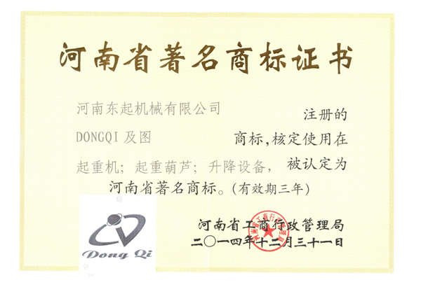 熱烈祝賀河南東起機(jī)械有限公司獲得河南省**商標(biāo)!